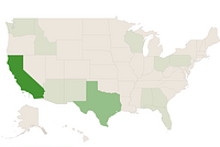 Displays states and their respective liquefied natural gas (LNG) station counts